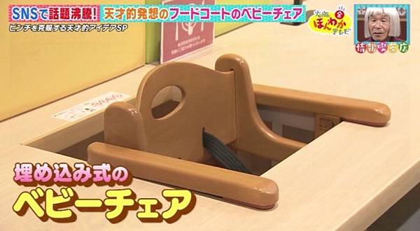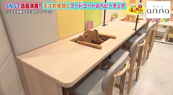 把一般兒童座椅直接崁進美食街的餐桌裡,他們知道,孩子吃飯時容易嫋嫋酸😩