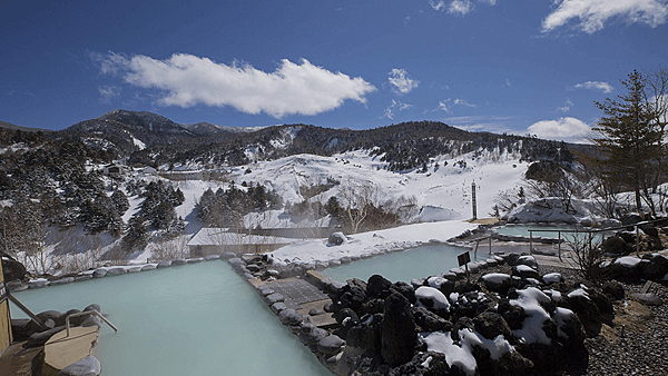 位於海拔1800公尺的萬座溫泉,可是日本少有的高山溫泉鄉,也被稱之為「距離天空第一近的溫泉」。