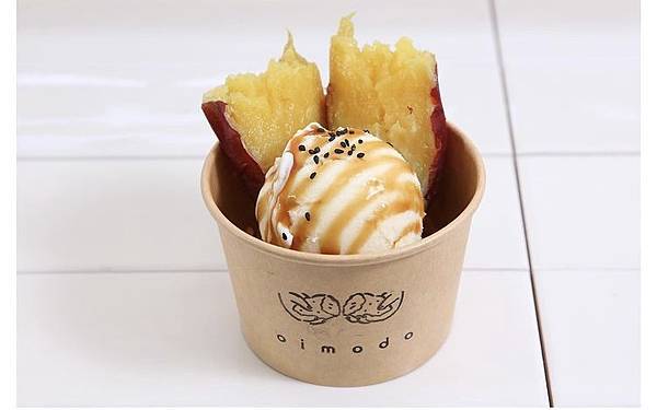 地瓜做的甜點還不只如此,像是還有創意冰淇淋,將地瓜製成糊狀,然後將其與牛奶義式冰淇淋混合,為了充分發揮食材的味道,整體甜度適中.烤地瓜的自然風味和清爽的冰淇淋巧妙地交織在一起.