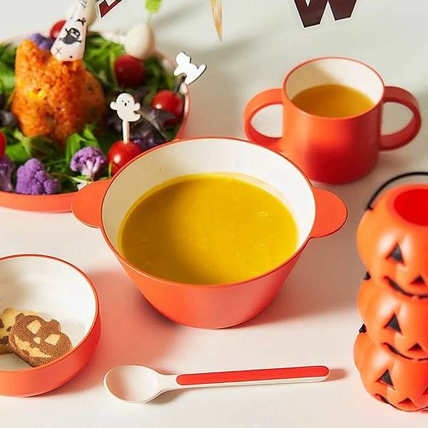 適合裝湯的帶柄碗、可用作菜盤或配菜的盤子,以及方便舀取的湯匙組合。