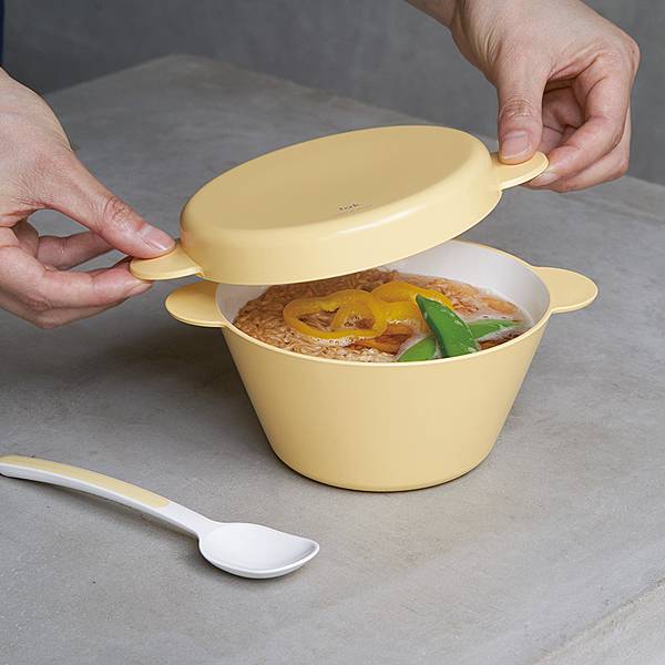 給人明亮溫暖的黃色器皿,「tak」的 孩童湯碗組合。